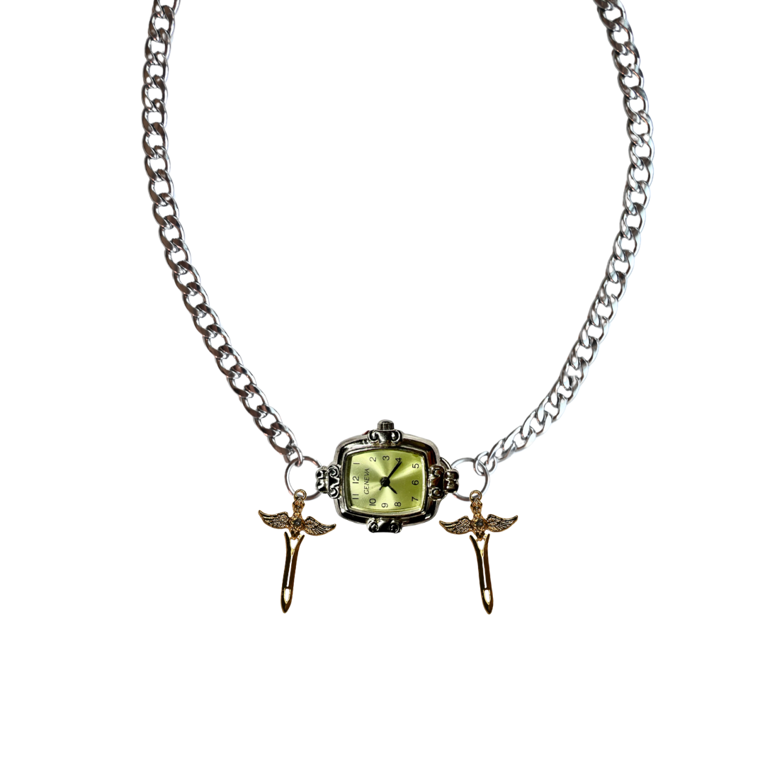 Customize: Single Dial Watch Choker Necklace (Silver)