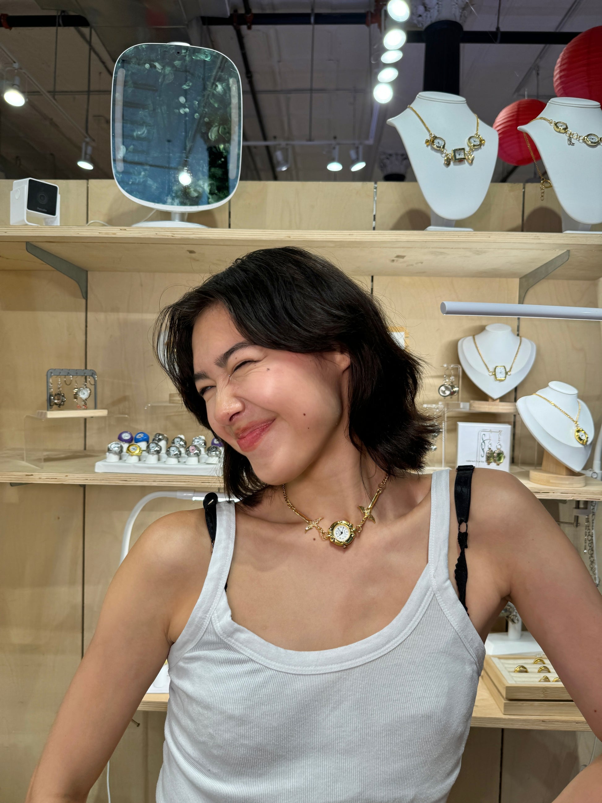 Gold Circular Watch and Sword Necklace