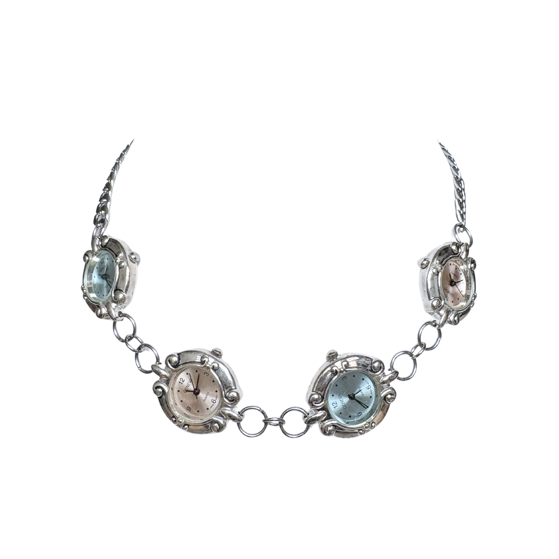Stay classy in our Silver Green and Purple 4-Watch Necklace!